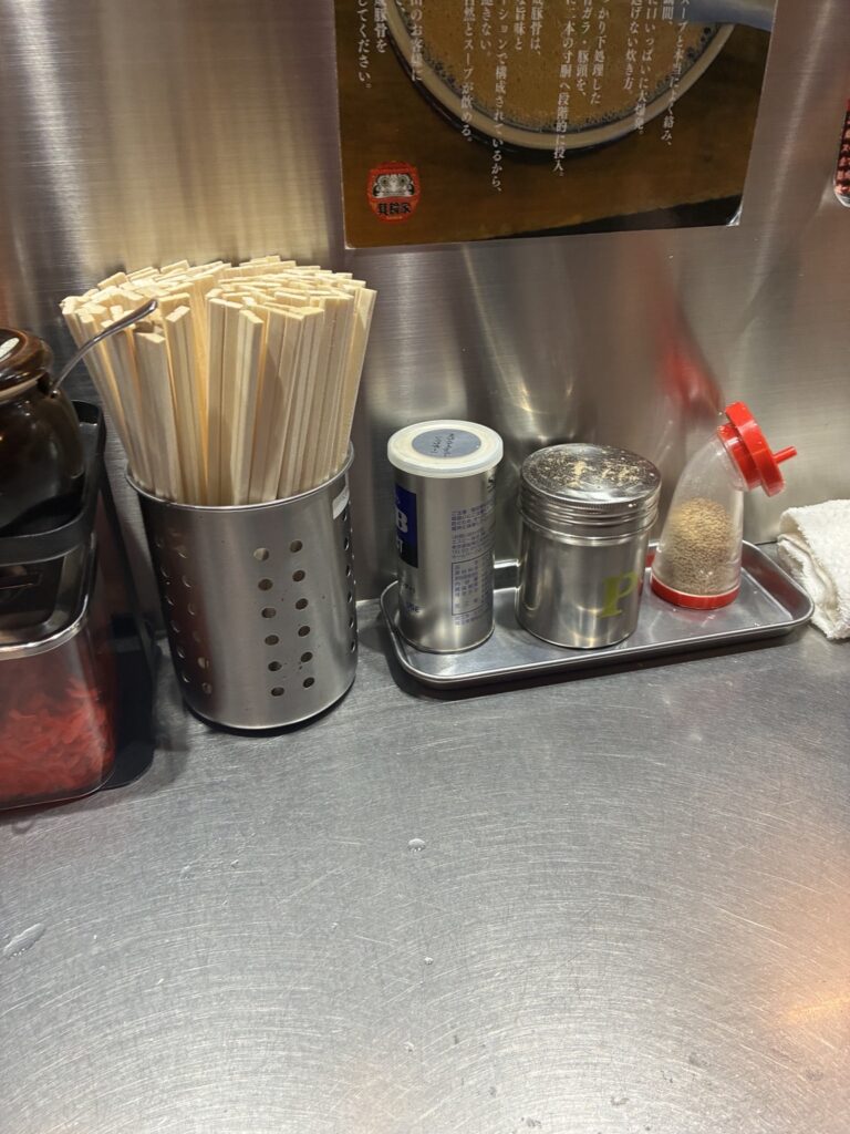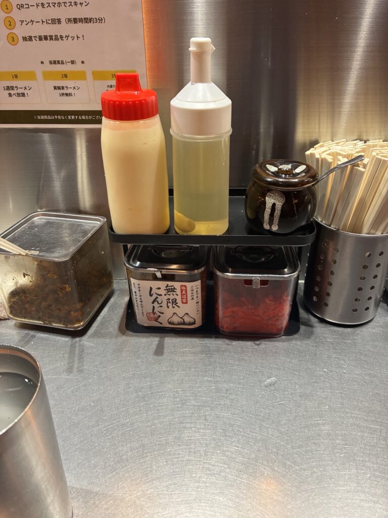 卓上調味料や無料トッピングもかなり豊富。